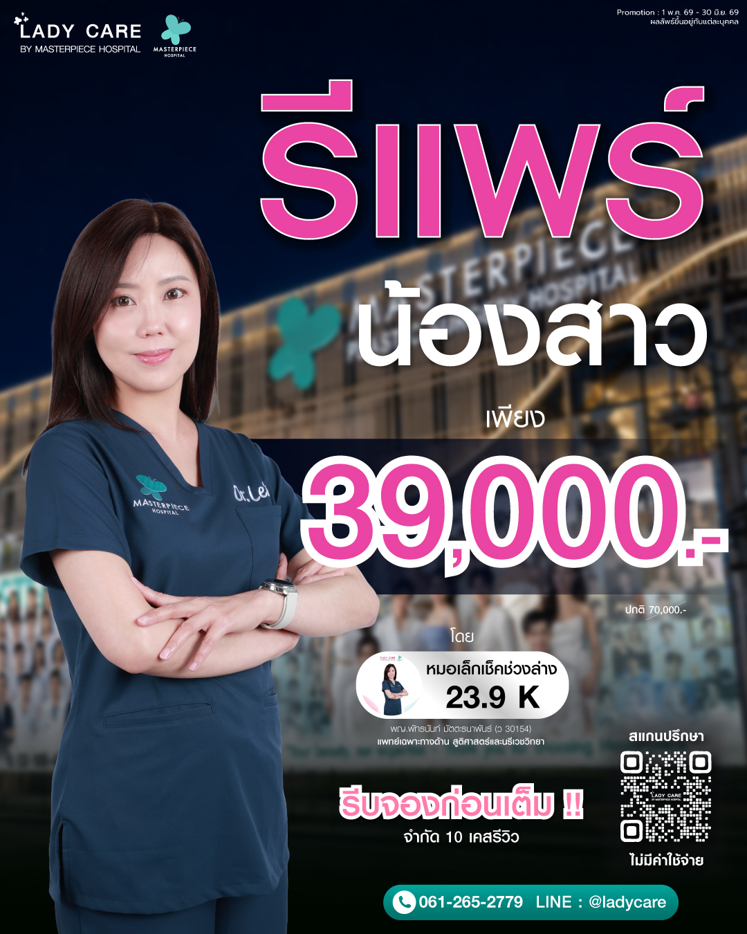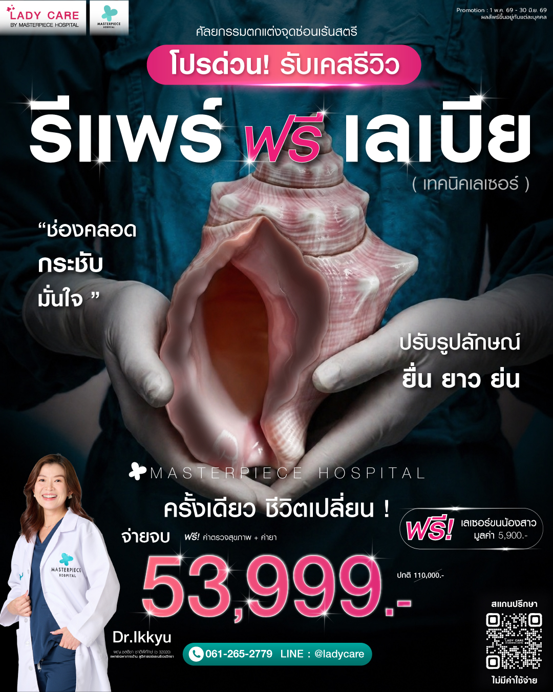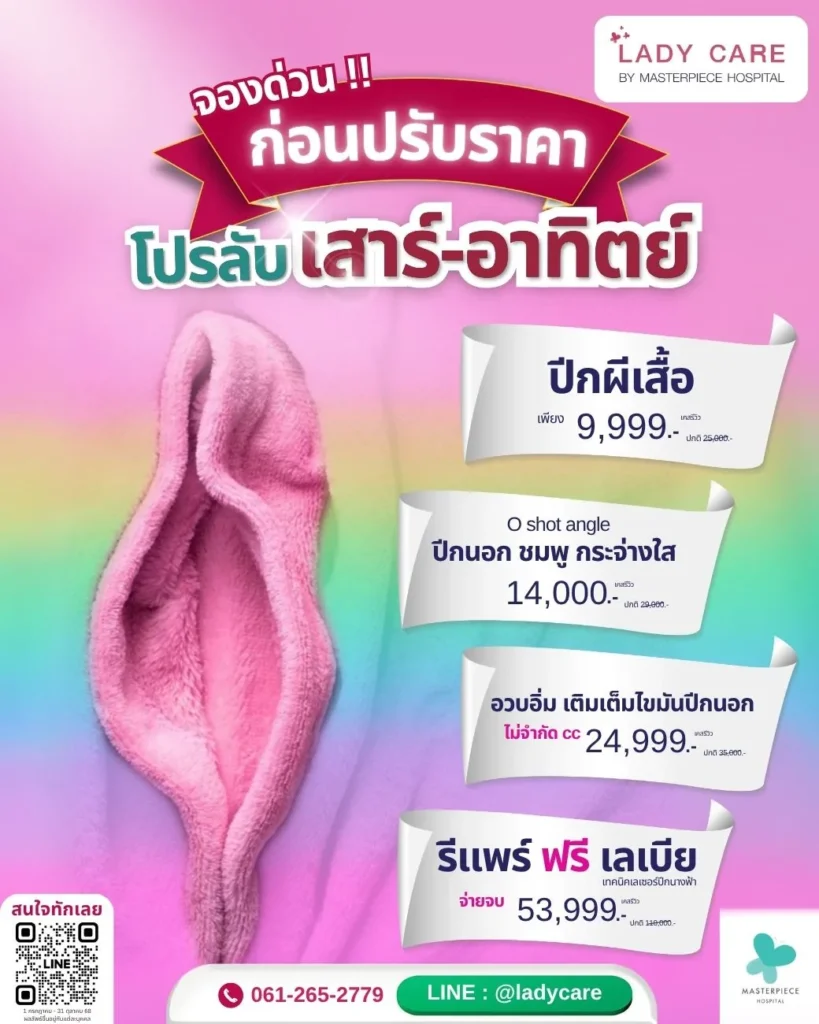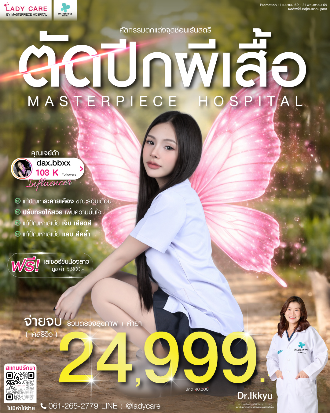 ศูนย์ดูแลและให้คำปรึกษาปัญหาจุดซ่อนเร้นของผู้หญิง โดยแพทย์ด้านสูตินรีเวชที่มีประสบการณ์มาอย่างยาวนาน ประกอบกับเทคนิคการผ่าตัดและ นวัตรกรรมที่ทันสมัย เน้นความปลอดภัย ทำให้มั่นใจได้ถึงผลลัพธ์และความพึงพอใจโดยโรงพยาบาลมาสเตอร์พีช ปรึกษาโทร 061-265-2779