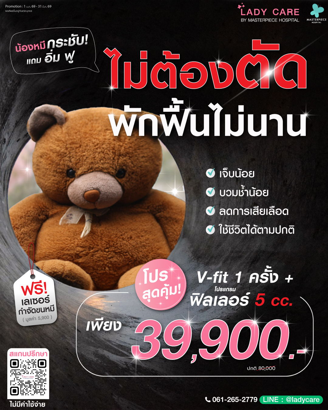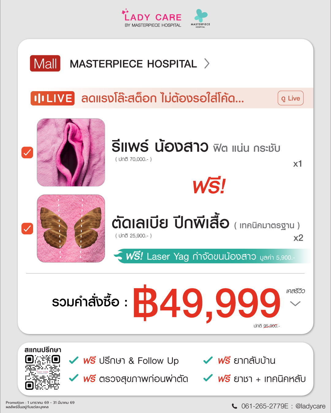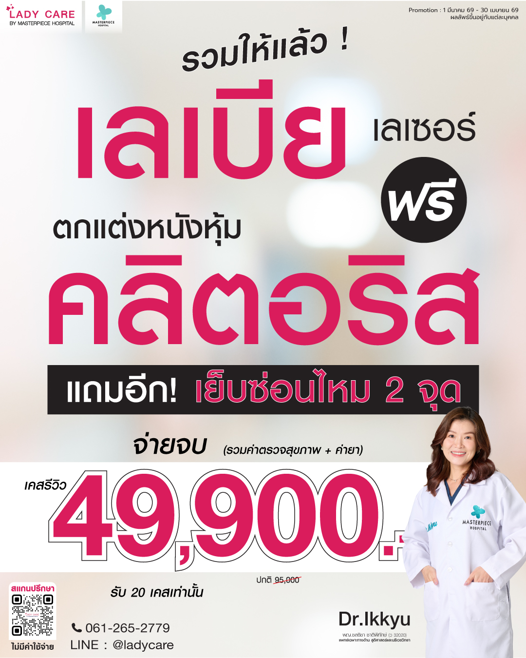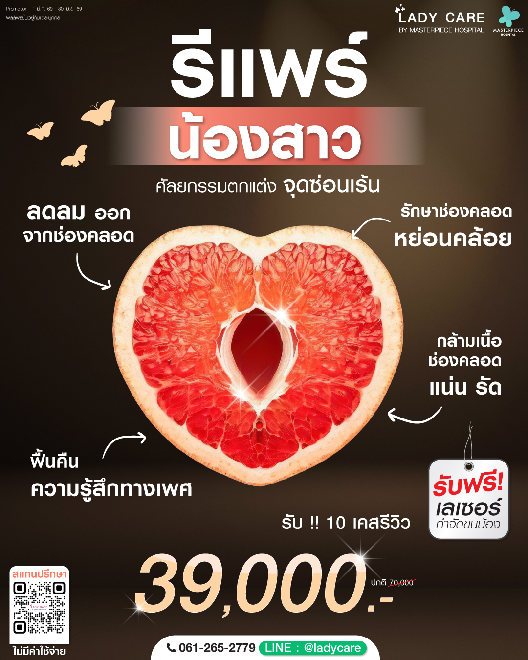 ศูนย์ดูแลและให้คำปรึกษาปัญหาจุดซ่อนเร้นของผู้หญิง โดยแพทย์ด้านสูตินรีเวชที่มีประสบการณ์มาอย่างยาวนาน ประกอบกับเทคนิคการผ่าตัดและ นวัตรกรรมที่ทันสมัย เน้นความปลอดภัย ทำให้มั่นใจได้ถึงผลลัพธ์และความพึงพอใจโดยโรงพยาบาลมาสเตอร์พีช ปรึกษาโทร 061-265-2779
