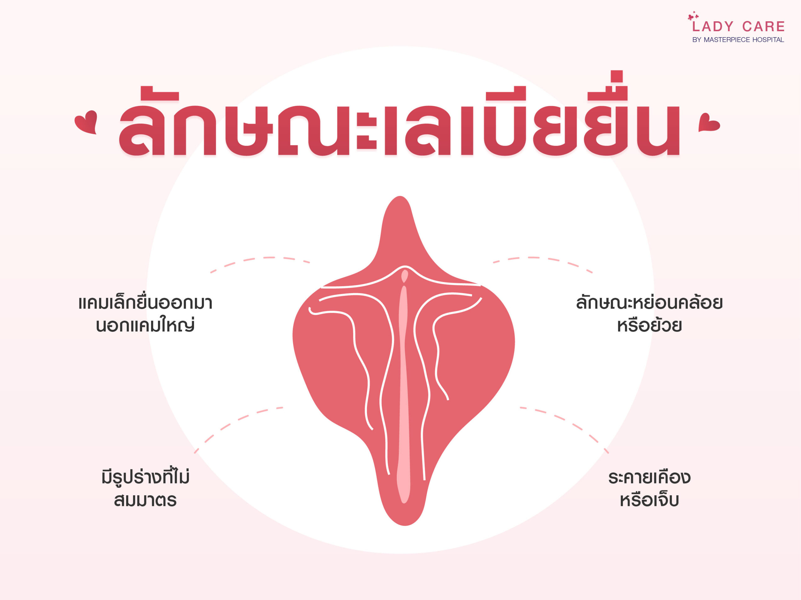 เลเบียยื่น หรือแคมเล็ก (labia minora) ยื่นออกมานอกแคมใหญ่ เป็นลักษณะทางกายภาพที่พบได้ทั่วไปในผู้หญิง ซึ่งไม่ใช่อาการผิดปกติทางการแพทย์ แต่อาจส่งผลต่อความรู้สึกไม่มั่นใจในรูปร่างของอวัยวะเพศ จนกระทบต่อความสัมพันธ์ทางเพศหรือสุขภาพจิต โดยในบทความนี้จะพาไปไขข้อสงสัยเลเบียยื่น ไม่เท่ากัน เกิดจากอะไร รักษาอย่างไร หายเองได้หรือไม่