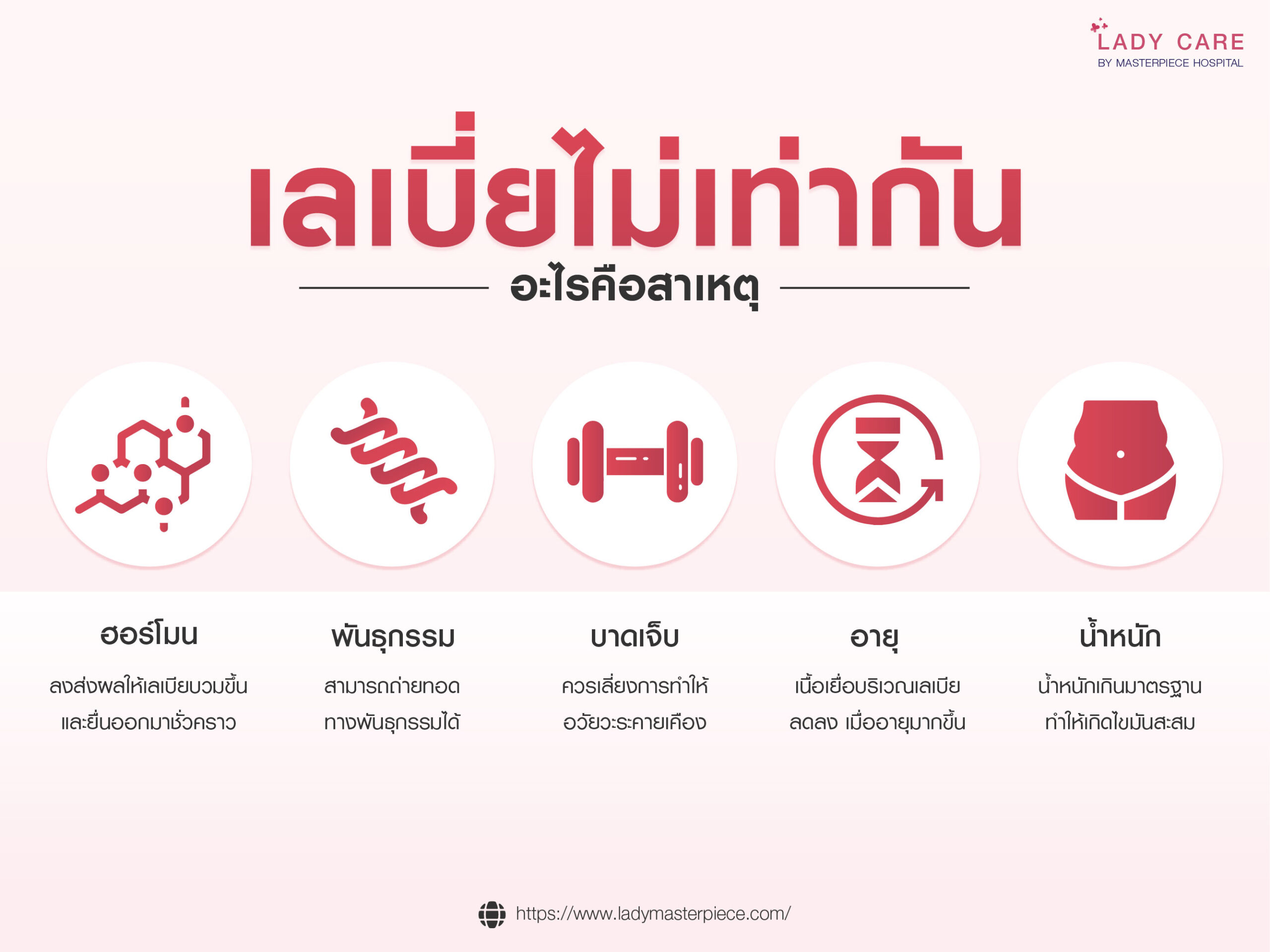 ศัลยกรรมตกแต่งเลเบียเป็นอีกหนึ่งทางเลือกที่สามารถช่วยแก้ปัญหาจุดซ่อนเร้นได้อย่างตรงจุด อีกทั้งยังเสริมความกระชับ เพิ่มความมั่นใจให้กับผู้หญิงแต่ละบุคคลได้เป็นอย่างมีประสิทธิภาพ ซึ่งที่โรงพยาบาลมาสเตอร์พีชมีบริการปรึกษาปัญหาเลเบียยื่น ไม่เท่ากัน โดยไม่มีค่าใช้จ่าย พร้อมแนะนำทางเลือกการดูแลที่ปลอดภัย เหมาะสม และเห็นผลจริง ผู้สนใจสามารถสอบถามข้อมูลเพิ่มเติมได้ที่ https://www.ladymasterpiece.com